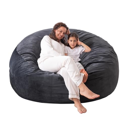 Large Bean Bag Chair: 3 ft Memory Foam Bean Bag Chairs for Adults/Kids,Bean Bag Chair with Fillings,Soft Faux Fur Fabric – Dutch Velvet, Charcoal, 3 Foot