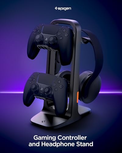 Spigen Gaming Controller and Headset Stand for PlayStation, Xbox, Nintendo Switch 2, Razer, Gaming Headphones and Headsets, Universal Desk Stand Mount, 2 Tiers with Storage Cable Organizer – Black