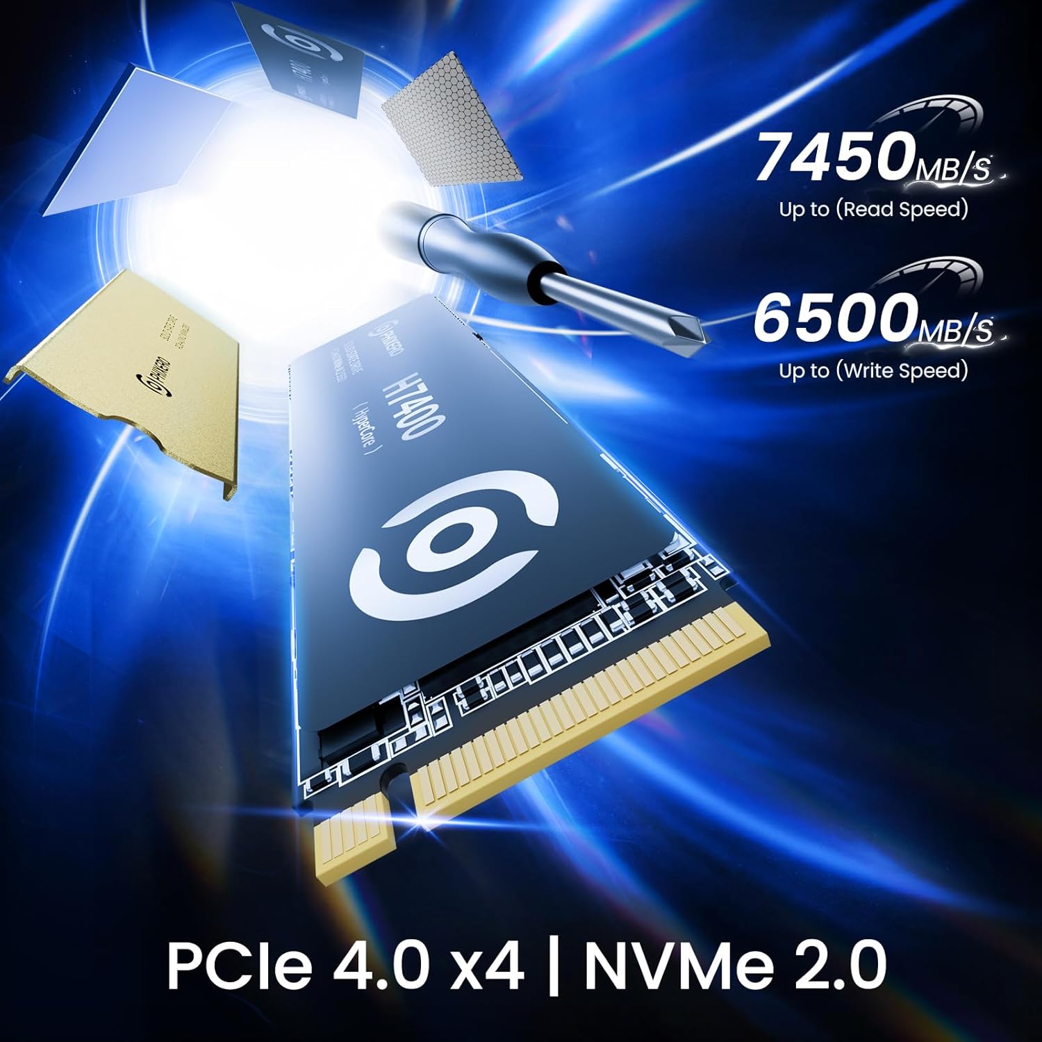 Blazing Fast 7450MB/s Read Speed: Powered by PCIe 4.0 Gen4 technology, this NVMe SSD delivers lightning-fast data transfer, perfect for gaming, 4K video editing, and heavy multitasking. Experience reduced load times for PS5 games and seamless app launches